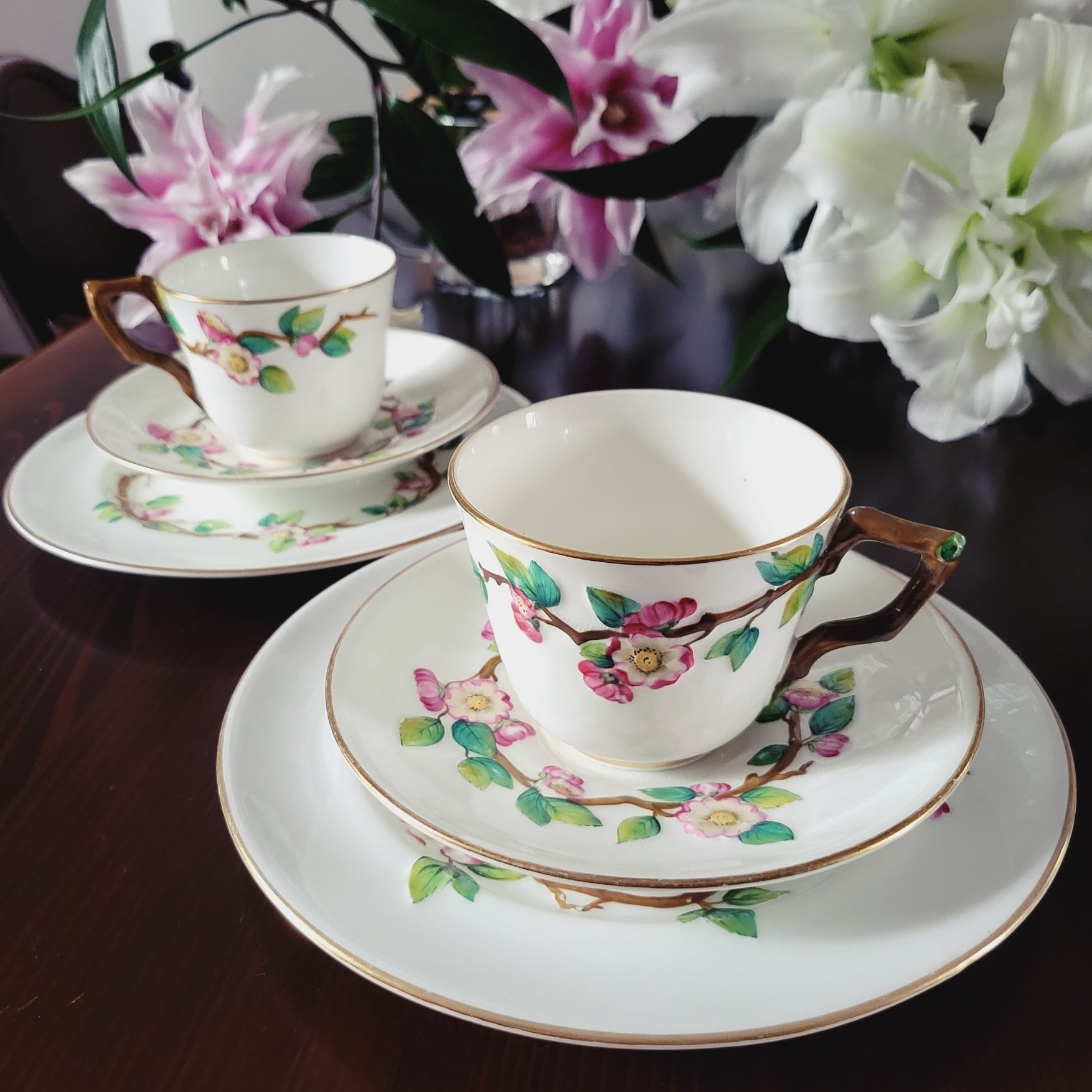 ボストンの老舗によって特注された、ロイヤルウースター製のトリオです。(写真には2客とも写しておりますが、1客ずつの販売ですのでご注意下さい。)