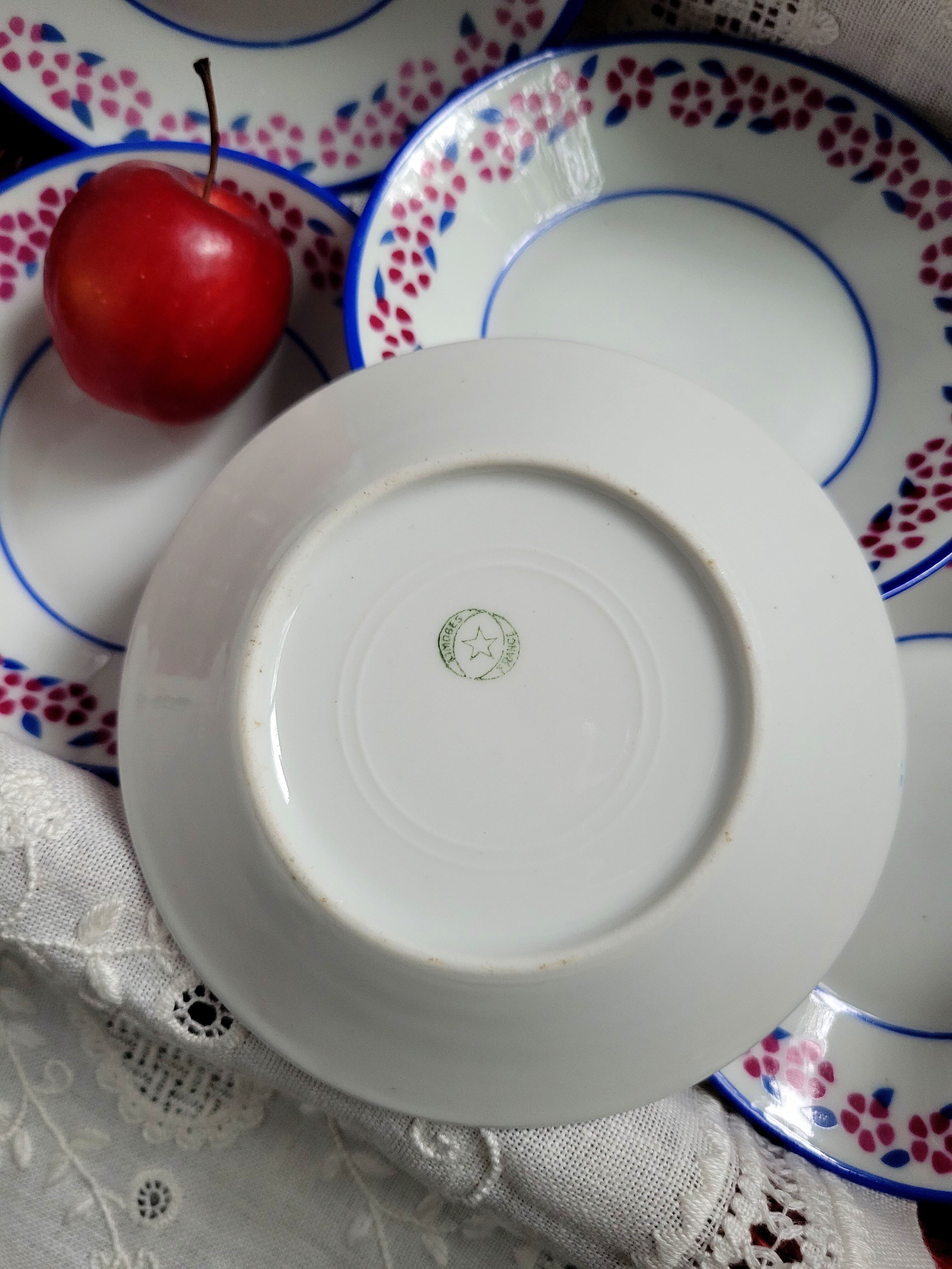 カップとソーサー全てにF.Legrand & Cieのバックスタンプ、緑の星と“limoges”のサインがあります。