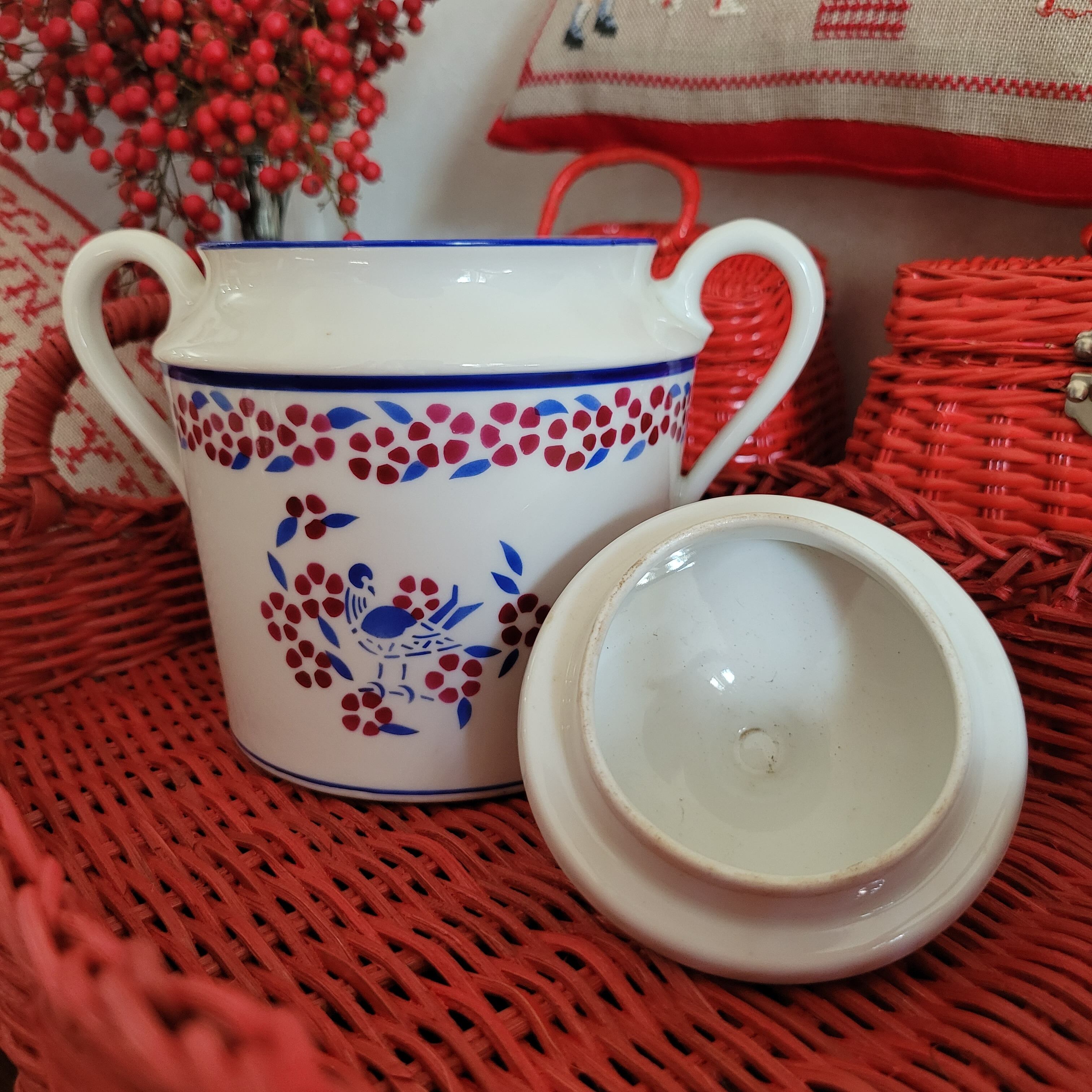 1865年創業のフランスの名陶“F.Legrand & Cie(ルグラン製陶所)”による、花と鳥の描かれた可愛らしいシリーズのシュガー。1930年代製ですので、間もなくアンティークの仲間入りですね!